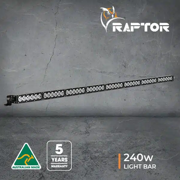 The RAPTOR 240 light bar comes complete with stainless steel pivot mounting brackets, stainless steel fixings and a 3-metre lead for mounting onto roof rack systems. As with all Raptor products, the light bars are manufactured in Australia and covered by a 5-year warranty for total peace of mind.