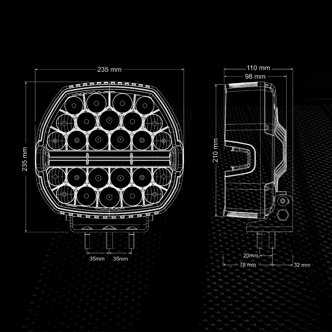 With a striking look, the VULKAN features our class leading Contrl® Optics and a newly designed Widr® Optic teamed with a cut out design to maximise beam width. Combine these with 44 Osram LEDs, and you’ve got some serious performance.
